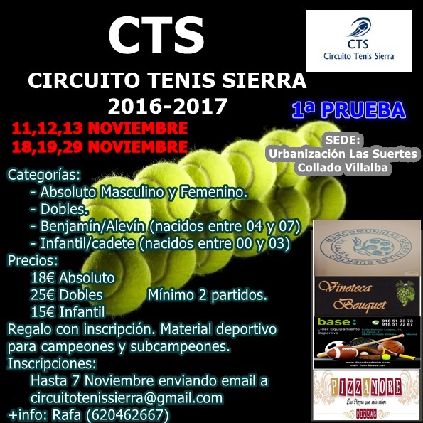 La 1ª Prueba que se celebrará en la Urbanización Las Suertes de Collado Villalba durante dos fines de semana (11,12,13 y 18,19, 20 de Noviembre) en las pistas 1,2 y 3 (la 4 quedará para reservas de vecinos en esos días).